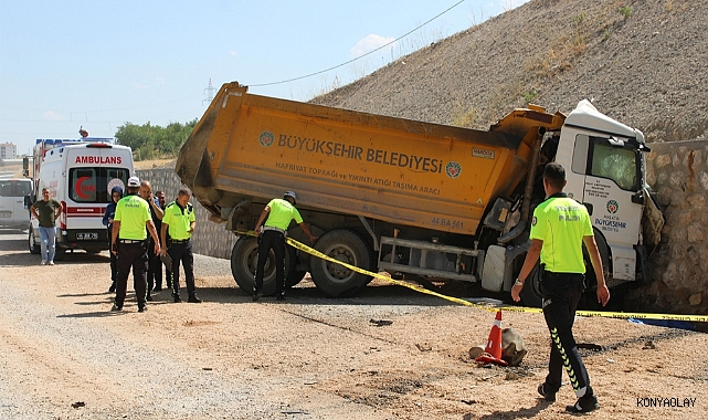 Malatya 'da lastiği patlayan hafriyat kamyonu istinaf duvarına çarptı. Kazada şoför Erkan Karadağ (48) yaşamını yitirdi.