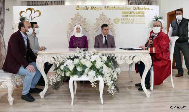 Meram Belediye Başkanı Mustafa Kavuş, mutluluğa adıma atan çiftlerin nikah merasimlerine fırsat buldukça katılmaya çalıştığını belirterek, “Yeni yuvalarını kuran çiftlerimizin mutlu günlerine şahit olmaktan büyük keyif alıyoruz. 2021 yılında Kovid19 salgını bir az olsun hafiflerken bu durum nikah hazırlığı yapan çiftlerimizin merasimlerini düzenlemesine vesile oldu. Evlendirme Memurluğumuz tarafından 2020 yılında 2 bin 341 nikah akdi gerçekleştirilirken geçtiğimiz sene bu rakam 3 bin 167’ye yükseldi. Evlilik rakamlarının artması bizleri de memnun etti. Çiftlerimize, sağlıkla, huzurla mutlu yuvalarında bir ömür mutluluk duyuyorum” şeklinde konuştu.