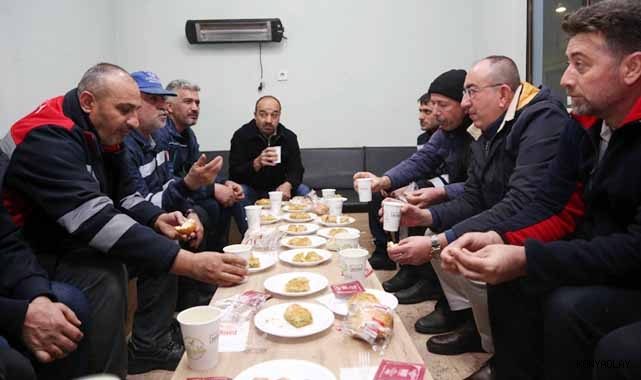 Hafta sonu başlayan ve şehri etkisi altına alan kar yağışları ile birlikte Meram Belediyesi’ne bağlı ekipler yol açma ve tuz serim çalışmalarını aralıksız şekilde sürdürüyor. 24 saat esasına göre sahada olan ekipleri mola verdikleri Arif Bilge Tesisleri’nde ziyaret eden Meram Belediye Başkanı Mustafa Kavuş, personellerle sohbet ederek sıcak çorba ikramında bulundu.