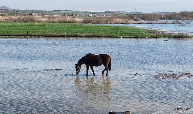 Uluabat Gölü, Bursa-İzmir kara yolunun kıyısına kadar gelirken bölgede bulunan milyonluk yarış atlarının bulunduğu tarlalar da su altında kaldı. Arap ve İngiliz yarış atları, su içinde gezinirken drone ile görüntülendi. Milyonluk tayların annesi olan damızlık atların büyük kısmının gebe olması da dikkat çekti.At çiftliğinin çalışanı Paşa Şıkıyev, 2017'den bu yana Karacabey'de tavlada çalıştığını belirterek, "Göl suları ilk kez buraya kadar geldi. Bu şekilde hiç görmemiştim. Atları sürekli ahırda tutamayız mecbur gezindikleri alana çıkardık. Orası da su altında ama yapacak bir şey yok bir süre böyle idare edeceğiz" dedi.