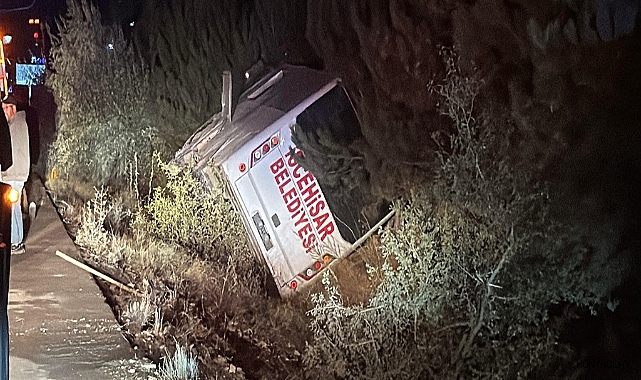 Afyonkarahisar'da yağış nedeniyle kayganlaşan yolda kontrolden çıkan yolcu minibüsünün devrildiği kazada 12 kişi yaralandı.Kaza saat 19.30 sıralarında İscehisar girişinde meydana geldi. İscehisar-Afyonkarahisar güzergahında yolcu taşımacılığı yapan İscehisar Belediyesi'ne ait yolcu midibüsü yağış nedeniyle kayganlaşan yolda kontrolden çıkarak devrildi. Kazada 12 kişi hafif şekilde yaralandı. Yaralılar Afyonkarahisar Devlet Hastanesi, Afyonkarahisar Sağlık Bilimleri Üniversitesi Hastanesi ve İscehisar Devlet Hastanesi'ne sevk edildi. Olayla ilgili polis tarafından soruşturma başlatıldı.