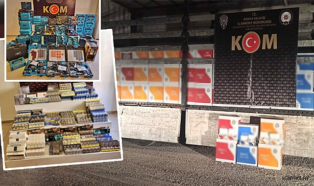 Konya Emniyet Müdürlüğü Kaçakçılık ve Organize Suçlarla Mücadele Şube Müdürlüğü ekipleri, kaçakçılara yönelik operasyon düzenledi. Operasyonda çok sayıda gümrük kaçağı sigara, makaron ve elektronik eşya ele geçirilirken, 3 kişi gözaltına alındı.Konya KOM Şube Müdürlüğü ekipleri kaçakçılara göz açtırmıyor. Kaçakçılığın önlenmesine yönelik yapılan çalışmalar kapsamında Konya girişinde durdurulan bir tırda arama yapan ekipler, 4 milyon adet sahte bandrollü boş makaron ele geçirdi. Tır şoförü gözaltına alındı.İŞ YERİNDE SATILAN SAHTE ETİKETLİ ELEKTRONİK CİHAZLAR POLİSİN DİKKATİNDEN KAÇMADISelçuklu ve Karatay İlçesinde tespit edilen 2 iş yerine polis ekiplerince baskın yapıldı. İş yerlerinde yapılan aramalarda, 3.217 paket gümrük kaçağı sigara, 525 adet sahte elektronik cihaz etiketi, 80 adet gümrük kaçağı matkap, hilti, spiral vb. elektronik cihaz ele geçirildi. Olayla ilgili iki şüpheli gözaltına alındı.5607 sayılı Kaçakçılıkla Mücadele Kanununa muhalefet suçundan gözaltına alınan 3 şüpheli hakkında adli işlem başlatıldı.