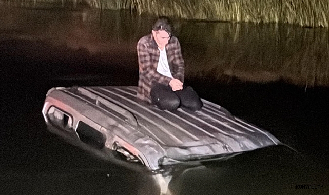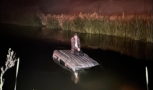 Nehre düşen sürücü kurtarılmayı bekledi