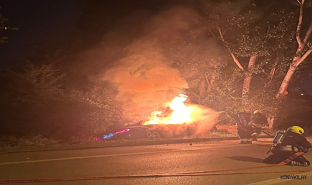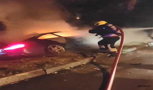 Otomobil alev aldı