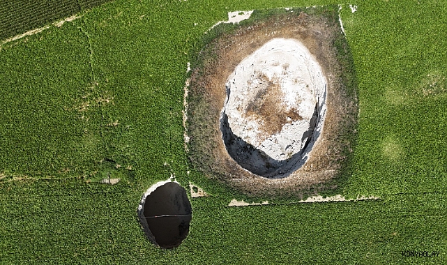 Konya'nın Karapınar ilçesinde pancar ekili tarlada 40 metre derinliğinde yeni bir obruk meydana geldi. Geçen sene de aynı tarlada obruk oluştuğu öğrenildi.
