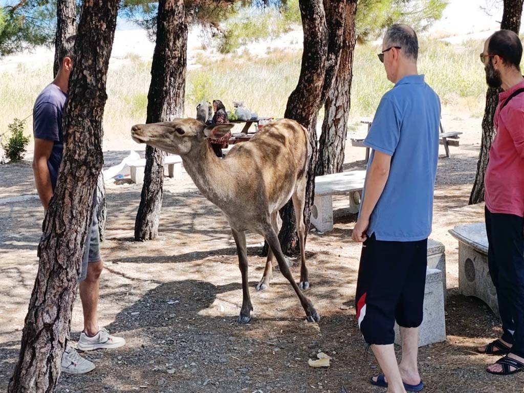 BURDUR'da Salda Gölü çevresine bırakılan nesli tehlike altındaki kızıl geyiklerden biri, halk plajındaki piknikçilerin yanına kadar yaklaştı.Tarım ve Orman Bakanlığı Doğa Koruma ve Milli Parklar Genel Müdürlüğü tarafından 'Nesli Tehlike Altında Olan Türlerin Tekrar Eski Yaşam Alanlarına Geri Kazandırılması Projesi' kapsamında Salda Gölü'nün çevresindeki ormana bırakılan kızıl geyiklerden biri, Salda Gölü halk plajında piknik yapanların yanına kadar geldi. Geyiği gören piknikçiler, kısa süreli şaşkınlığın ardından hayvanı sevmeye çalıştı. Geyik de bir süre bölgede dolaştı.