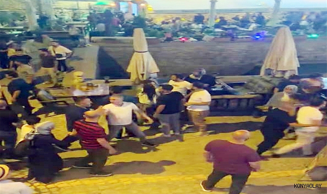 KONYA'da bir restoranda çocukları başka masaya oturunca uyarılan polis memuru M.T. (31) ile iş yeri sahipleri arasında kavga çıktı. İki tarafın yakınlarının dahil olduğu kavgada 4 kişi yaralanırken, o anlar kameraya yansıdı. Olaya ilişkin gözaltına alınan 7 kişi, adli kontrol kararıyla serbest bırakıldı.Olay, 19 Temmuz Cumartesi günü saat 22.00 sıralarında Selçuklu ilçesi Sille Mahallesi Hükümet Caddesi'ndeki bir restoranda meydana geldi. Polis memuru M.T., eşi R.T., akrabaları Ç.T., O.K., H.K. (43), M.K. ve çocukları restorana gitti. İddiaya göre; M.T.'nin çocukları başka masaya oturunca çalışanlar, gelip uyarıda bulundu. M.T. de iş yeri sahipleriyle konuştu. İddiaya göre aralarında çıkan tartışma kavgaya dönüştü. Kavgaya; M.T., eşi R.T., yakınları ile iş yeri sahibi M.E.A. (26), kardeşleri hakim M.A.A. ve Z.H.A., babası A.A. (52) ile çalışanlardan bazıları karıştı.7 KİŞİ GÖZALTINA ALINDIKavgada M.T., işletme sahibi M.E.A., kardeşleri M.A.A. ve Z.H.A. yaralandı. Çevredekilerin ihbarıyla olay yerine çok sayıda polis ve sağlık ekibi sevk edildi. Yaralılardan 3 kişi tedavisinin ardından taburcu olurken, Z.H.A.'nın tedavisi sürüyor. Olayın ardından M.T., yakınları Ç.T., O.K., H.K., M.K. ile iş yeri sahibi M.E.A. ve babası A.A. gözaltına alındı.'KALABALIK BİR ŞEKİLDE BANA SALDIRDILAR'Polis memuru M.T., ifadesinde, "İş yerinde eşim, çocuklarım ve akrabalarımla oturuyorduk. Çocuklar başka masada oturdukları için garsonlar tarafından kaldırıldı. Sonra mekan yetkilisi ile görüşmeye gittim. Daha sonra mekandan kalkmak istedik. İş yeri sorumluları da kalmamız için ısrar etti. Daha sonra iş yeri sahibi olduğunu düşündüğüm kişi küfürlü konuştu. Bunun üzerine tartıştık ve kavga çıktı. Kavgada kalabalık bir şekilde bana saldırdılar" dedi.'EŞİ, KIZ KARDEŞİMİN BOĞAZINA YAPIŞTI'İş yeri sahibi M.E.A. ifadesinde, şunları anlattı: "Masa yüzünden M.T. ile annem tartıştı. M.T.'nin eşi R.T., kız kardeşim Z.H.A.'nin boğazına yapıştı. Ben de bunu görüp koşarak yanlarına gittim. Bu sırada M.T. ile aramızda arbede çıktı." 7 kişi, emniyetteki işlemlerinin ardından sevk edildiği mahkemece yurt dışı yasağı konularak adli kontrol kararıyla serbest bırakıldı.BAŞSAVCILIKTAN AÇIKLAMAKonya Cumhuriyet Başsavcılığı da olayla ilgili açıklama yaptı. Açıklamada, "Olayla ilgili tarafların karşılıklı şikâyetleri üzerine Cumhuriyet Başsavcılığımızca derhal soruşturma başlatılmış olup, soruşturma kapsamında toplanan deliller doğrultusunda taraflar hakkında Ceza Muhakemesi Kanunu’nun 109. maddesi uyarınca yurt dışına çıkış yasağı şeklinde adli kontrol tedbiri uygulanmasına karar verilmiştir. Olayın meydana geldiği iş yerindeki güvenlik kameralarının arızalı olduğu ve tamire gönderildiği yönündeki beyanlar, düzenlenen tutanakla kayıt altına alınmıştır. Olaya ilişkin kamera kayıtlarının araştırması halen devam etmektedir. Ancak kamuoyunda yer alan 'Kamera kayıtlarının kasıtlı olarak karartıldığı' yönündeki iddialar da ayrıca ayrıntılı biçimde incelenmekte ve soruşturma kapsamında değerlendirilmektedir" denildi. Salih BÜYÜKSAMANCI/KONYA, (DHA)