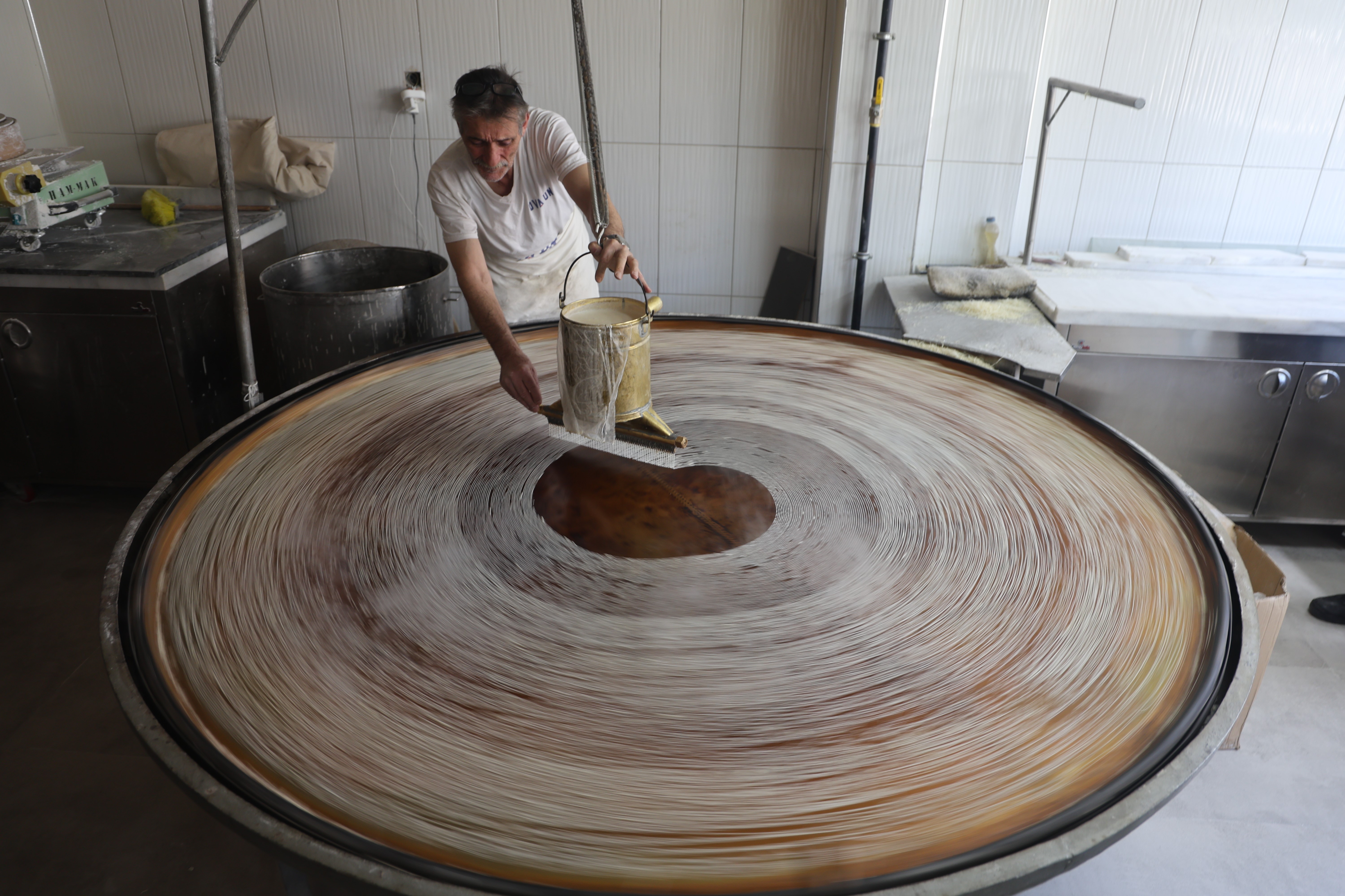 Kadayıf ustası Hakan Güvez, yıllardır bu geleneği sürdüren isimlerden biri.45 yıl önce Kahramanmaraş'ta yaptırdığı dövme bakır ocağını hâlâ kullanan Güvez, "Elimizden geldiğince işimizin başındayız, dökmeye devam ediyoruz. Malzememiz sadece un ve su; başka hiçbir şey yok. Tamamen doğal, hiçbir katkı maddesi içermiyor. Bu bakır ocakları evdeki sinilerden değil, özel olarak yapılmış olanlardan" diye konuştu.Güvez, el yapımı ile fabrikasyon kadayıf arasındaki farkı vurgulayarak, "Yediğinizde damakta kendini belli eder. Lezzet ve şerbet emişi bakımından aralarında kocaman fark var. Bunu anlatmakla olmaz, tadınca anlaşılır" ifadelerini kullandı.