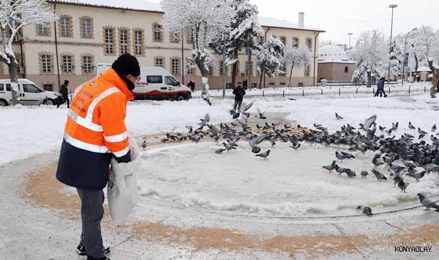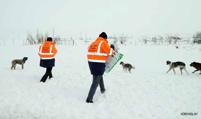 Konya Büyükşehir Belediyesi, yoğun kar yağışının yaşandığı Konya’da yiyecek bulmakta zorlanan sokak hayvanlarının aç kalmaması için beslenme alanlarına yem bırakmayı sıklaştırdı