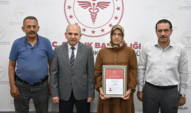 Hadim’de görevi başında hayatını kaybeden Hemşire Abdurrahman Karataş‘ın şehitlik belgesi eşine teslim edilirken duygu dolu anlar yaşandı