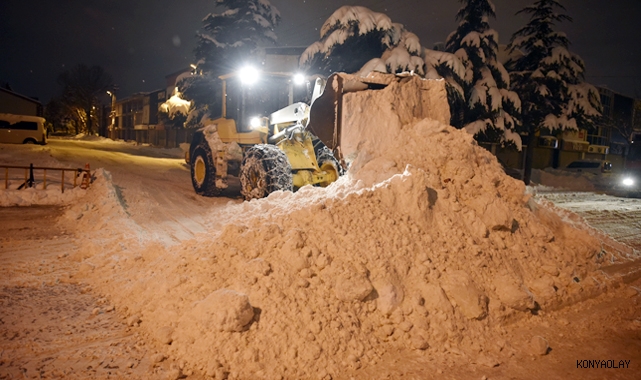 Selçuklu Belediyesi'nin kar ve buzlanmaya karşı, kar küreme, tuzlama ve solüsyon çalışması yapan acil müdahale ekipleri, merkezde yoğun olarak kullanılan bölgelerin yanı sıra ara sokaklarda da kar küreme işlemi yapıyor. 24 saat kesintisiz çalışan ekipler vatandaşların olumsuz durumlarla karşılaşmaması için mücadele veriyor.