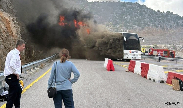 Olay, öğle saatlerinde Seydişehir Antalya kara yolunda ilçe merkezine 7. kilometre kala kaçış rampası mevkiinde meydana geldi. Edinilen bilgiye göre, Antalya'nın Alanya ilçesinden Seydişehir ilçesi istikametine seyir halinde olan plakası ve sürücüsünün ismi öğrenilemeyen Metro Turizm otobüsünün motor kısmında yangın çıktı. Yangının fark edilmesi üzerine araç kontrollü olarak durdurularak yolcular tahliye edildi. İhbar üzerine olay yerine sevk edilen itfaiye ekiplerince yangın kontrol altına alınarak söndürüldü. Otobüste büyük çapta maddi hasar meydana gelirken, yangın nedeniyle bir süre trafiğe kapatılan kara yolunda trafik, polis ekiplerince kontrollü olarak sağlandı.