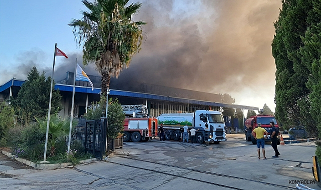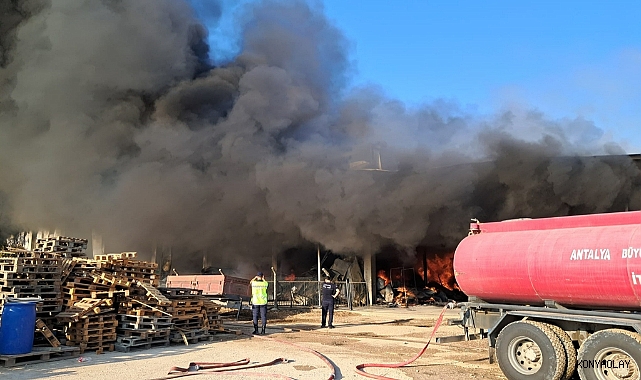 Antalya’nın Serik ilçesinde soğuk hava deposu ve bitişiğindeki imalathanede yangın çıktı. Bölgeye sevk edilen ekipler, alevlere müdahale ediyor.