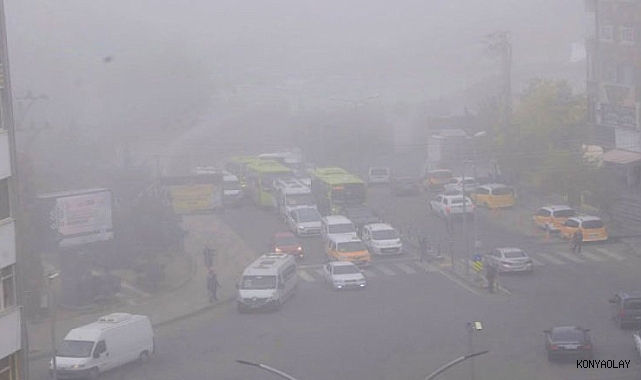 Konya'nın Çumra, Kulu, Ereğli ilçelerinde yoğun sisten dolayı trafik polisleri sürücüleri uyarıyor.