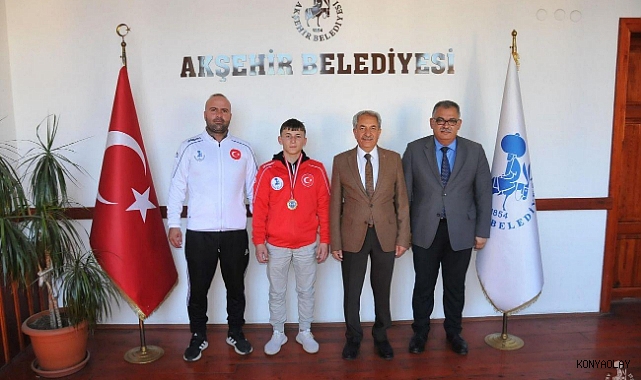 Türkiye Şampiyonu Halil Ergün’ün Başkan Akkaya’yı ziyaretinde, 1854 Akşehir Belediye Spor Kulübü Başkanı ve Akşehir Belediye Başkan Yardımcısı İbrahim Öncel ile antrenör Murat Korkmaz da hazır bulundu.