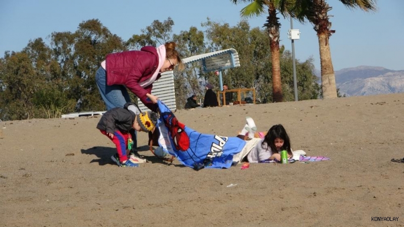Antalya'da sahile akın eden vatandaşlar güneşin tadını çıkardı