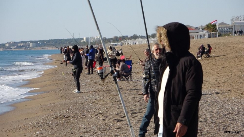 Türkiye'nin birçok bölgesi kar ve soğuk havaya teslim olurken Antalya'da yüzünü gösteren güneşin ardından vatandaşlar sahile akın etti. Manavgat ilçesinde Sorgun-Boğaz mevkiine akın eden vatandaşların büyük bölümü balık tutmayı tercih ederken, ailecek gelenler güneşin tadını çıkardı.
