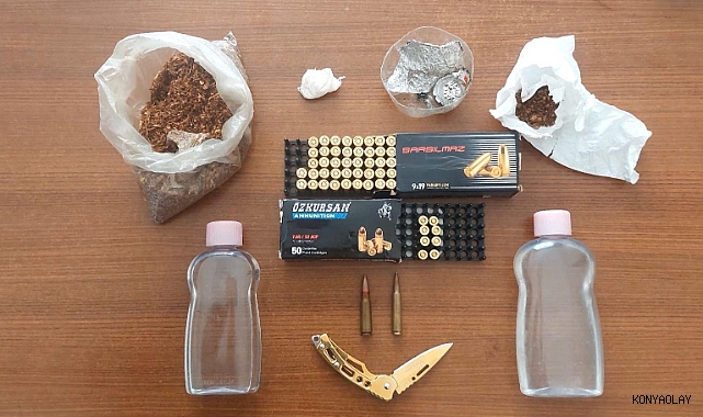 Kulu İlçe Emniyet Müdürlüğü ekipleri tarafından uyuşturucu madde satışı yaptığı tespit edilen şahıslara yönelik çalışma başlatıldı. Ekipler, Yeni Mahalle Yaşar Doğu Caddesi üzerinde K.K. isimli şahsın A.E. adlı kişiye uyuşturucu sattığı sırada baskın düzenledi. Operasyon sırasında motosikletiyle kaçmaya çalışan A.E., yol kenarına attığı tütüne emdirilmiş 2 gram uyuşturucu maddeyle birlikte yakalandı. A.E. hakkında işlem yapılarak serbest bırakıldı. Uyuşturucu maddeyi temin ettiği belirlenen K.K.’nin ikametinde yapılan aramada; 60 gram tütüne emdirilmiş uyuşturucu madde, 1 adet açılır kapanır bıçak, 7.65 milimetre çapında 8 adet fişek, 9 milimetre çapında 42 adet fişek, 1 adet kalaşnikof fişeği, 1 adet uzun namlulu silah fişeği, 4 gram uyuşturucu emdirilmiş tütün, uyuşturucu karışımında kullanıldığı değerlendirilen pet şişe tabanı, 2 adet alüminyum folyo, 2 gram uyuşturucu madde, 2 adet aseton türevi sıvı madde ve uyuşturucu ticaretinden elde edildiği değerlendirilen 4 bin 805 TL ele geçirildi. Gözaltına alınan K.K., emniyetteki işlemlerinin ardından sevk edildiği nöbetçi mahkemece tutuklanarak cezaevine gönderildi.