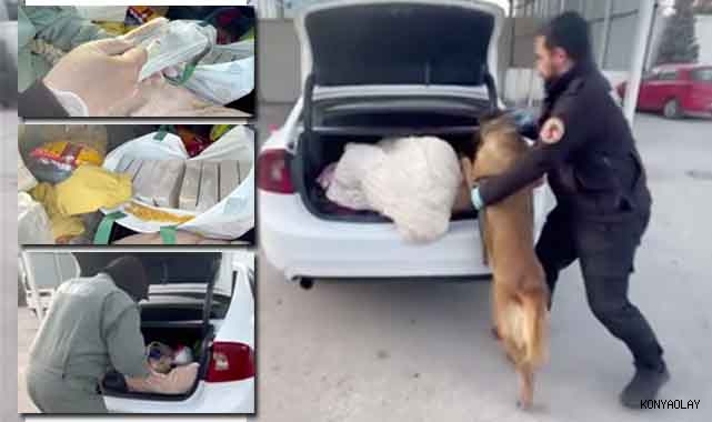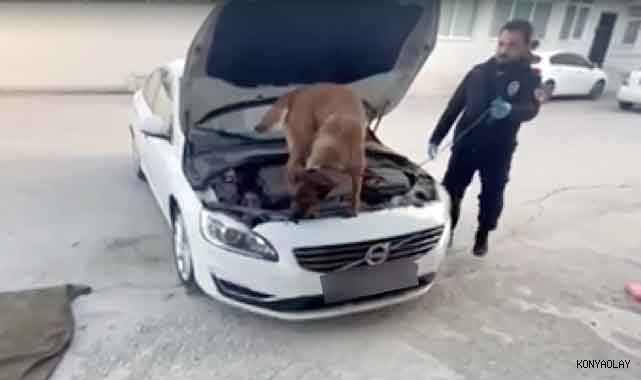 Konya İl Emniyet Müdürlüğü Narkotik Suçlarla Mücadele Şube Müdürlüğü ekiplerince rutin yol uygulamasında durdurulan araçta hassas burunlu narkotik köpeği felix eşliğinde yapılan aramada 30 parça halinde 15 kilo 90 gram Eroin Maddesi ele geçirilerek el konuldu ve 2 kişi gözaltına alındı.