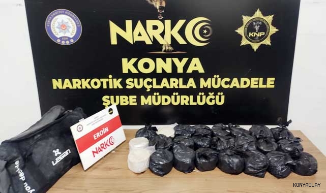 Konya İl Emniyet Müdürlüğü Narkotik Suçlarla Mücadele Şube Müdürlüğünce yapılan çalışmalar sonucu tespit edilen bir araçta yapılan aramada çeşitli yerlere zulalanmış vaziyette 24 parça halinde 12 kilo 225 gram eroin maddesi ele geçirildi.